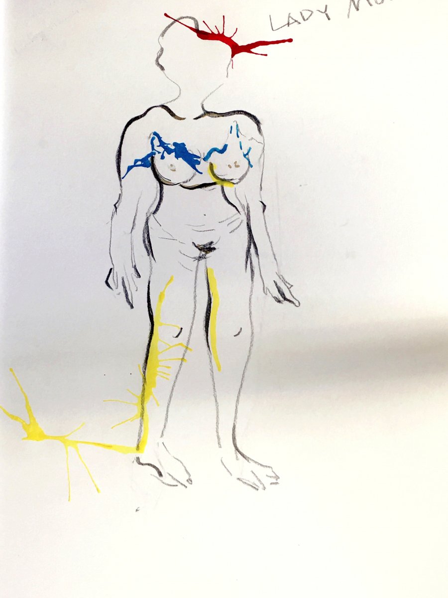 Based on the research of public art last week , We chose the details of the sketches to developed the silhouette and shape.A sculpture can stretch out numerous structures . I found that the combination of each different painting styles and different materials in just one drawing is very strong and exciting . Moreover, different materials can emphasize the different structures and emotions . I really enjoy the process of drawing , which allows me to go deeper into the relationship between shape and body and fabric . In the process of making clothes in the paper, I were not stop thinking of the relationship between shapes, lines,silhouette and human bodies, this process can be more patience to let me understand what is "profile" . After class, I also went to the fabric shop where countless different textured fabrics are the most simple colors . There are unexpected textures and prints on monochrome fabric . The difference of these fabrics and colorful fabrics , monochrome fabrics are more calm and elegant . And monochrome fabrics more emphasis on the profile of clothes .