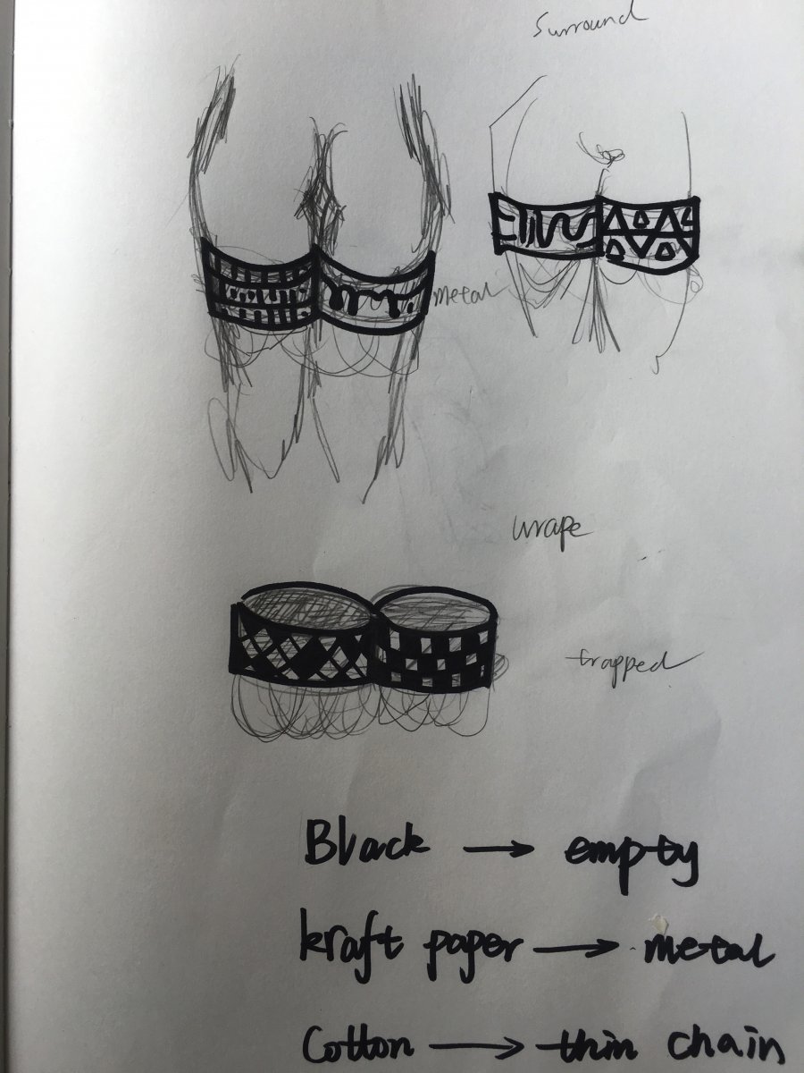 Today, our tutor very seriously introduced us to jewelry, fashion accessories and footwear designs . We know about: fashion accessories can be worn in where? how to wear? fashion accessories can be worn in any position, chin, chest elbow, etc. these accessories might tell some of the story, perhaps symbolizes people's identity. And a good design is not only designed for celebrities and wealthy people, but also design to the public. Whether the conceptual design or practical design, each one has his good points are . In the course, we got three key words "surround", "suspend", "support". Through these three words, we carried out brainstorming and creative associations. from “surround” , I associated “body” ‘’trapped“ ‘’area” etc . by the word “trapped”,I thought about "couldn't escape ","couldn't run" ------then leg accessories comes to my mind .