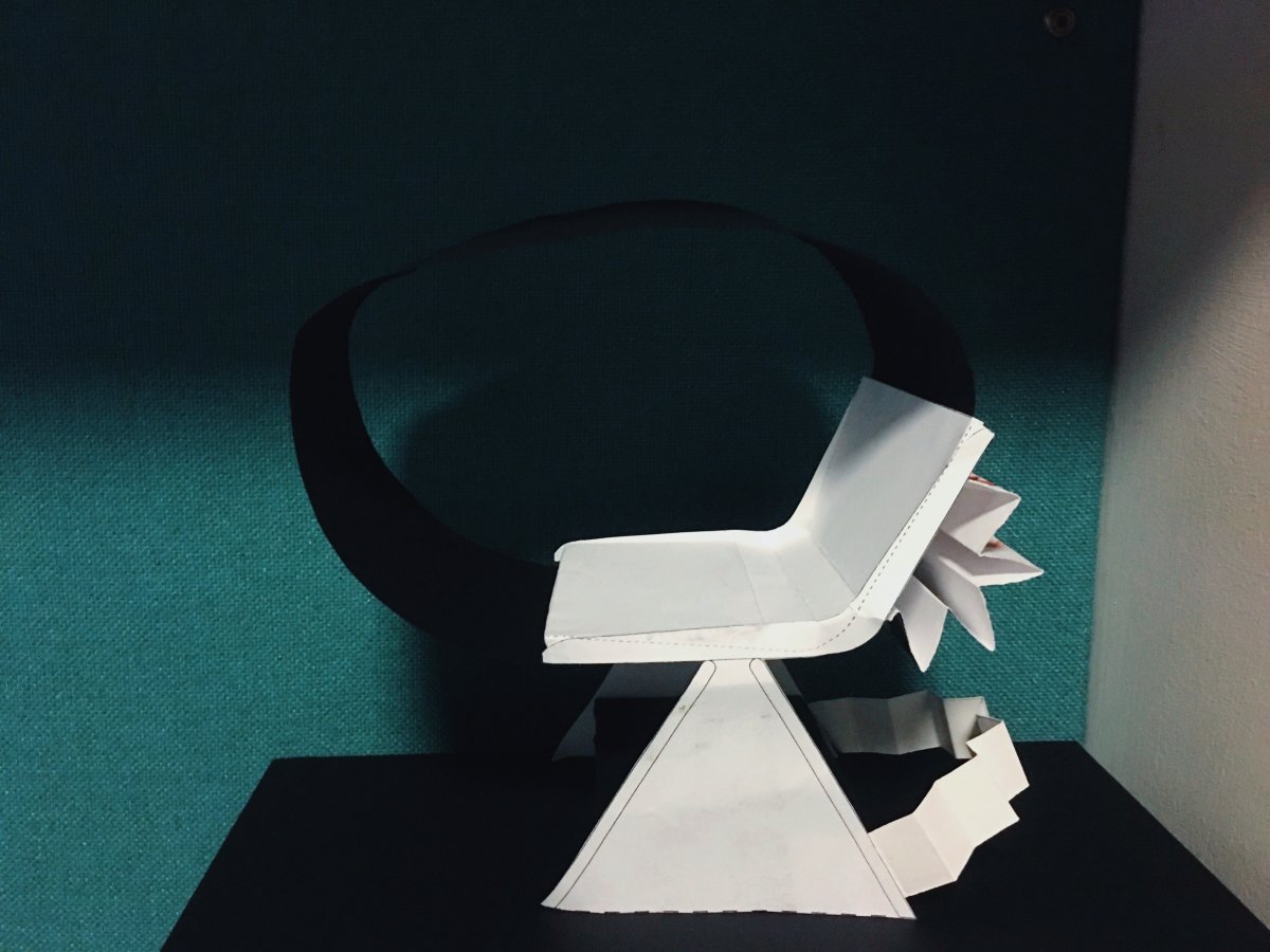 Chairs are one of the most common furniture in our daily life. For me, pets bring people companionship and dependence, so I choose to design a seat about pet . In fact, many modern people in childhood very insecure, which leads to many people looking for a warm and safe private corner, so I added a soft shading shed on the chair, people can stretch to rest and trust . Then I used to express the folding fan seat can adjust the height and width of the legs of the chair. down the seat is a cat sleeping hammock, and can be used for the cats to play ball.