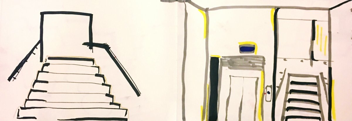Today, we found our favorite space in campus,then everyone redefines the chosen space . We learned how to brainstorm effectively . I think I have a lot of problems with language at present, so I will continue to work hard because the language barrier leads to the failure to communicate smoothly with the teachers and classmates on the project .When I was looking for the place, I saw the pipe on the ceiling, and then I took pictures and drew its‘ shape . Finally I thought of defining them with "CROOSS VEIN&ARTERY" ,I also found my problem , I did not clearly express the theme of what I think . Alice also made a point about it. The photo didn't show a sense of space .so that people didn't know where the place I chosen came from . I was impressed by the works of a Korean classmate . She chose the sink as her target space and used translucent blue plastic bags as material . She simulated the water with a plastic bag . and placed it in the sink as a form of "SAVE" ,It may seem simple, but it's very brief and very impressive and the material she chose was very suitable . Not only shows the softness of the water, but also the color of the stream.