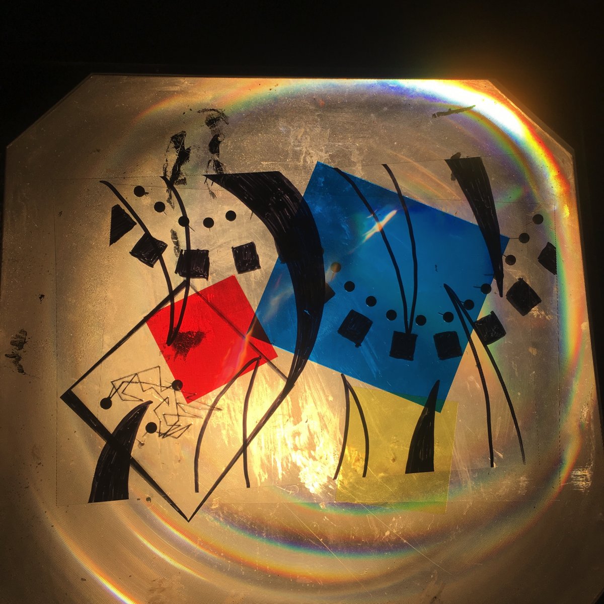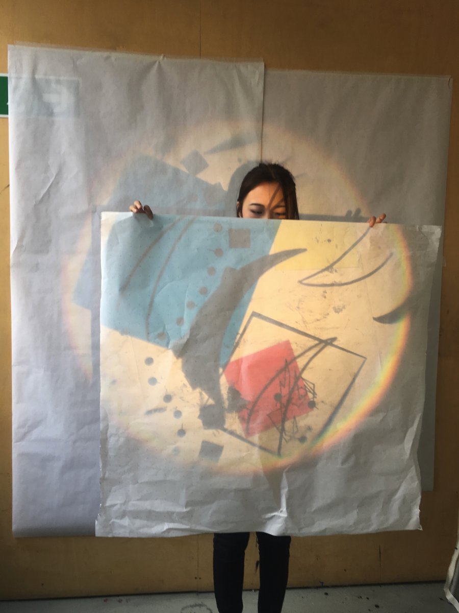 Today ,each of us took five of our personal belongings,and every group put their stuff all together ,then we have drawn a lot of sketches that related to those things . Because there must be numbers of stories behind the objects that people cherish.And those things have various of shapes and colors.In the end we selected some local patterns and painted in the sketches. We continue to extend our ideas through these basic patterns.We drew the patterns we had chosen on the plastic sheet,and done a projection(the projection is made by adding layers of transparent plastic). I think it's very interesting because it can have thousands of combinations and different visual effects.There are actually some drawbacks in my work,I thought they are not strong enough,so I repeated some patterns that I love.