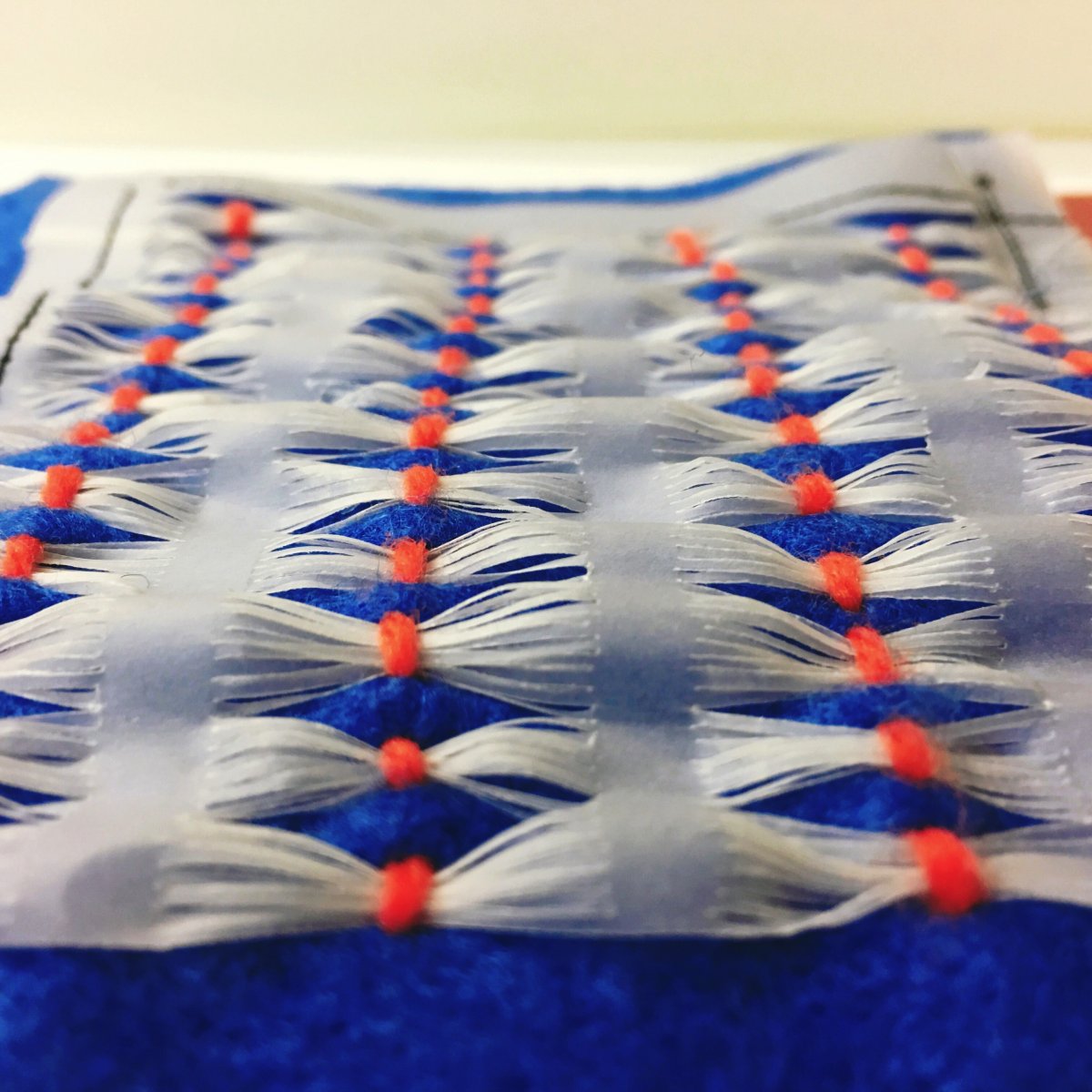 We use white paper to make various textiles which makes me feel that there are endless possibilities just by folding、pasting etc.even if no color . Each of works is interlocked , Every inspiration comes from the previous work .We tried all kinds of ways to create different textiles . We also made "rope" from different media . This approach is both difficult and simple ,but the first attempt was really interesting . We're shuttling between 2D and 3D ,which makes our thinking more exciting . We got a lot of resources today,Through these elements, good works can be developed from any perspective .